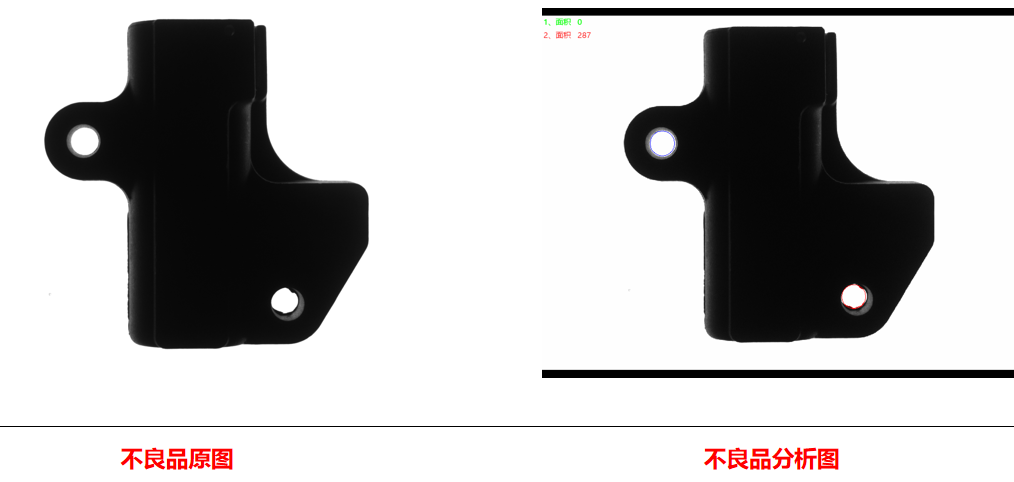 相機4側(cè)面背光檢測不良品分析圖:NG    結(jié)論:AI可檢                       檢測特征:孔內(nèi)毛刺