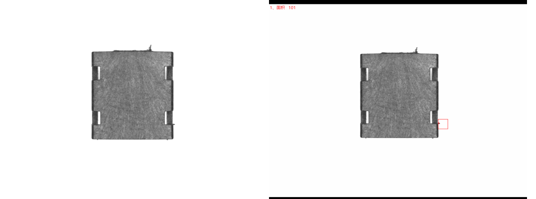 相機(jī)2,3側(cè)面正光檢測產(chǎn)品不良品分析圖:NG        結(jié)論:可檢                    檢測特征:水口破損