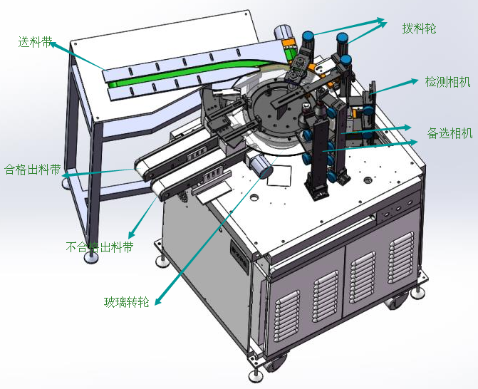 機器視覺檢測設備通過高分辨率攝像頭捕捉零部件圖像,利用圖像處理和模式識別技術對圖像進行分析,實現(xiàn)對零部件表面缺陷和尺寸的精確檢測。視覺檢測系統(tǒng)通常由計算機主機、工業(yè)相機、LED光源、光電傳感器、PLC可編程控制器以及單片機控制器等組成。其工作原理是:首先初始化設備并自檢,然后通過軟件驅(qū)動工業(yè)相機等待采集圖像信號。當光電傳感器檢測到產(chǎn)品經(jīng)過時,觸發(fā)工業(yè)相機采集零部件的數(shù)字圖像信號,并將數(shù)據(jù)傳輸給計算機主機進行圖像處理。經(jīng)過圖像處理后,系統(tǒng)判斷物體是否合格,不合格的產(chǎn)品將被放入不合格產(chǎn)品收集箱,而合格的產(chǎn)品則繼續(xù)檢測下一個。